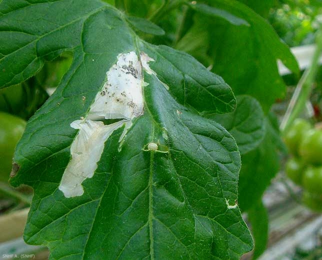 Avec le temps, les galeries se nécrosent et brunissent. Les chenilles s’attaquent aux fruits verts comme aux fruits mûrs. Les tomates présentent des nécroses sur le calice ou des trous de sortie à leur surface. Elles sont alors impropres à la consommation.