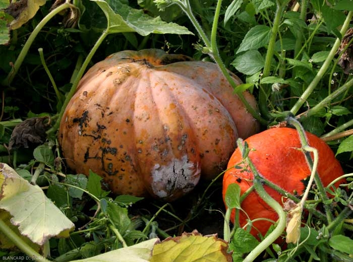 Les fruits sont aussi attaqués : une pourriture humide et molle se développe sur la partie au contact du sol. Les tissus altérés prennent aussi une teinte sombre.