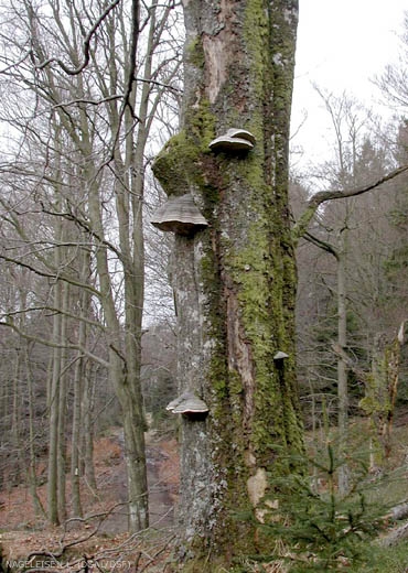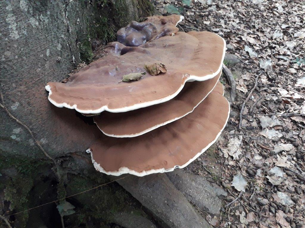 Fistuline hépatique (Fistulina hepatica), Ganoderme aplani (Ganoderma applanatum), Phellin robuste (Phellinus robustus), Amadouvier (Fomes fomentarius), Polypore hérissé (Inonotus hispidus), Polypore écailleux (Polyporus squamosus), Polypore du bouleau (Piptoporus betulinus), Pholiote destructrice (Pholiota populnea), Collybie visqueuse (Oudemansiella mucida), Armillaire (Armillaria spp.), Stérée hirsute (Stereum hirsutum), Stérée pourpre (Chondrostereum purpureum), Schizophylle commun (Schizophyllum commune), Tramète à couleur changeante (Coriolus versicolor), Polypore en touffe (Grifola frondosa), Polypore géant (Meripilus giganteus).