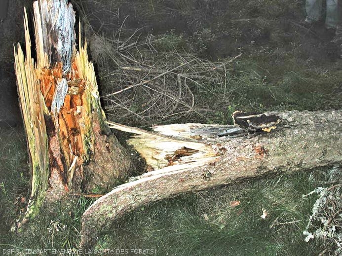 - Pourriture sèche, cubique, brune du bois de coeur, à odeur de térébenthine.