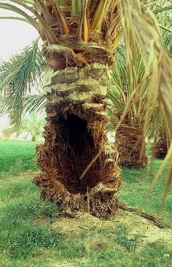 Les insectes sont dissimulés à l’intérieur du tronc et les premiers symptômes passent inaperçus. Les symptômes visibles n’apparaissent que longtemps après le début de l’infestation. Quand ils se manifestent, les arbres fortement attaqués perdent la totalité de leurs feuilles et le pourrissement des stipes (faux troncs) conduit rapidement à la mort des plantes.