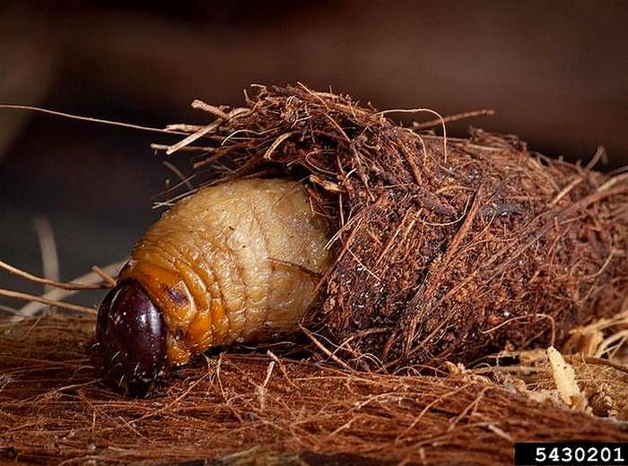 Les larves se nourrissent des tissus végétaux en forant des galeries à l’intérieur des palmes ou du stipe. Le stade larvaire dure 1 à 3 mois selon les conditions environnementales.