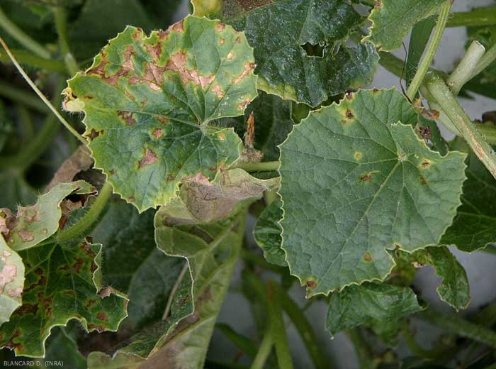 La cladosporiose provoque sur les feuilles des taches plus ou moins circulaires, brunissant et se nécrosant en vieillissant (figures 1 et 2). Elles peuvent prendre parfois une teinte grisâtre et être auréolées d'un halo jaune plus ou moins large.