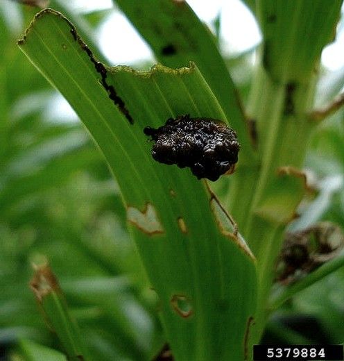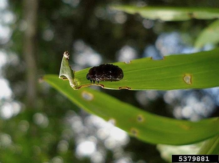 Les larves (figure 2) sont noires et orange, visqueuses, gluantes, et se recouvrent de leurs déjections (figure 3) pour se protéger des prédateurs et de la chaleur. Elles mettent 5 semaines à atteindre le stade adulte, nymphose comprise. L’hiver, l’insecte hiberne sous terre avant de réapparaître au printemps.
