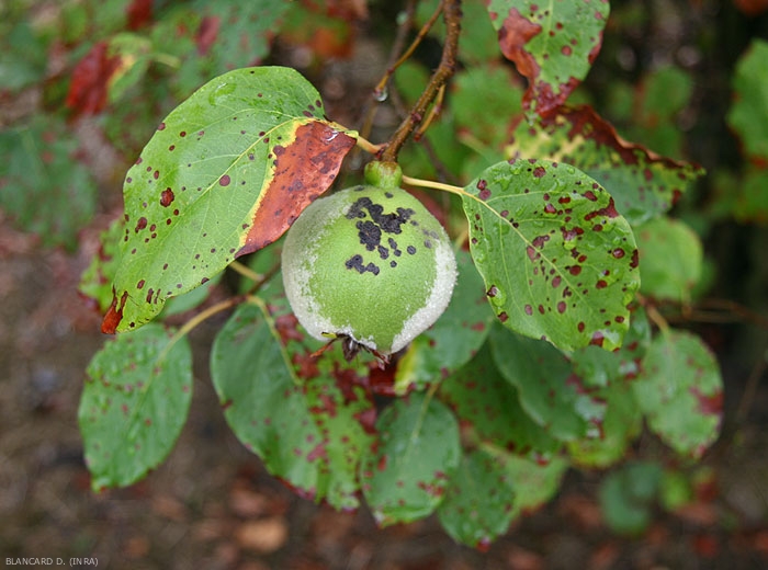 Les fruits sont également affectés, des petites taches crouteuses noires les parsèment (figures 1 et 4)