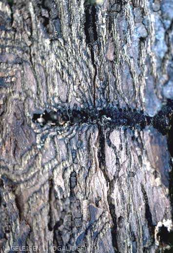 Parasite de faiblesse, il attaque des arbres affaiblis physiologiquement par une sécheresse par exemple. La destruction des assises génératrices entraîne rapidement le dessèchement des branches attaquées ou la mortalité des sujets si l'attaque se situe au niveau du tronc.