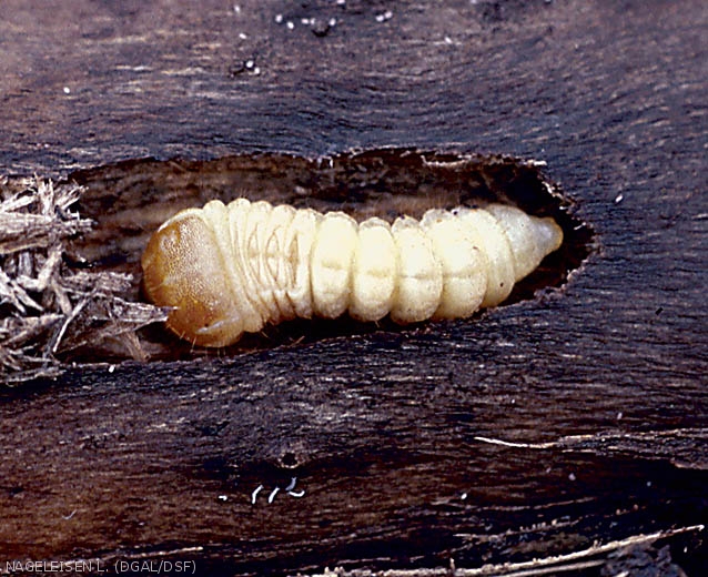 - larves : apode, de couleur blanche, 2 à 4 cm de long et 1 cm de large.