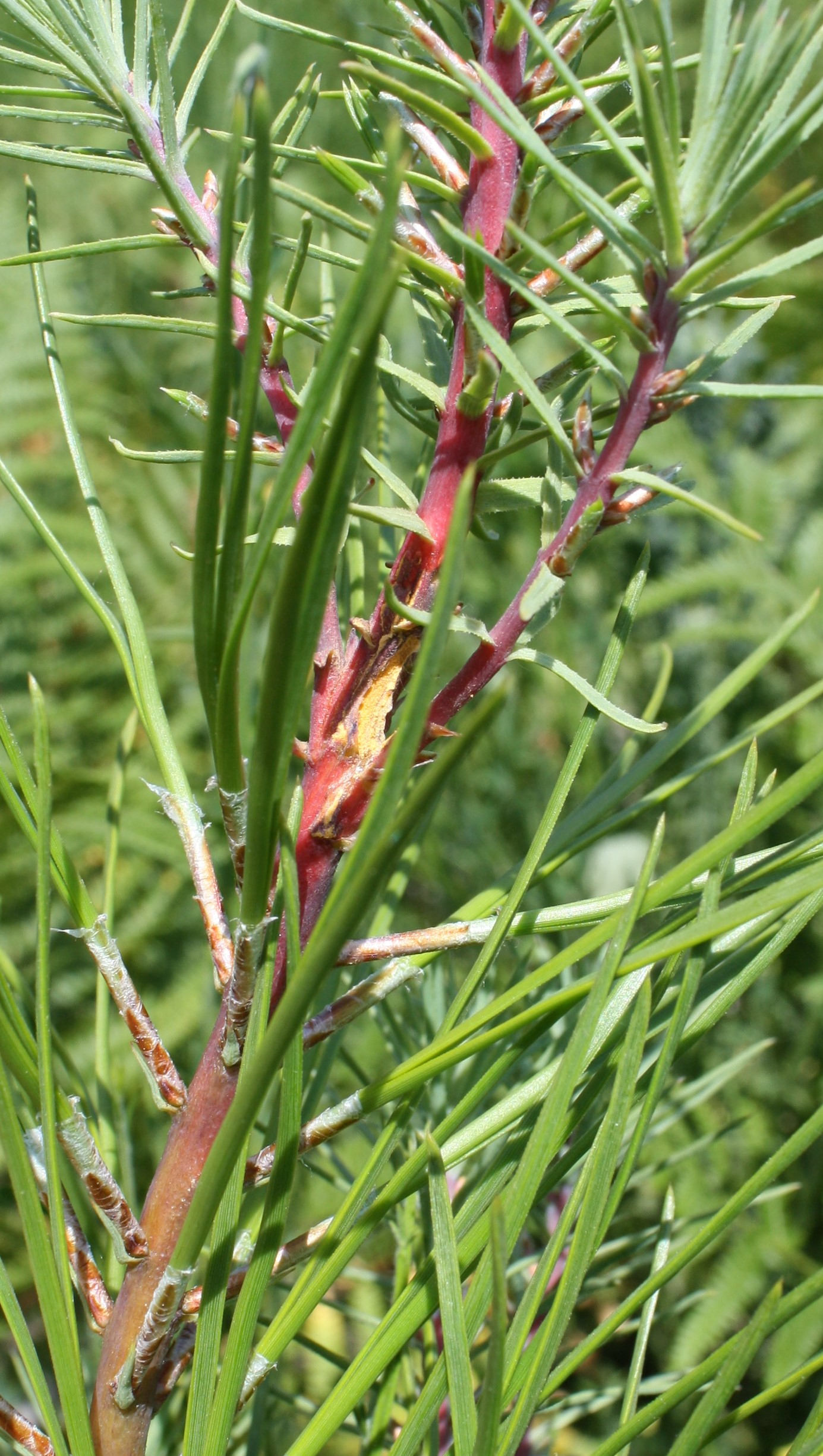 - Les spores infestent l'assise cambiale des jeunes pousses de pin. Il en résulte un ralentissement de la croissance du côté de l'infection ce qui occasionne une courbure. Puis, la pousse se redressant, elle forme un "S" caractéristique. Développement ralenti des pousses de pin, avec parfois un dessèchement.
