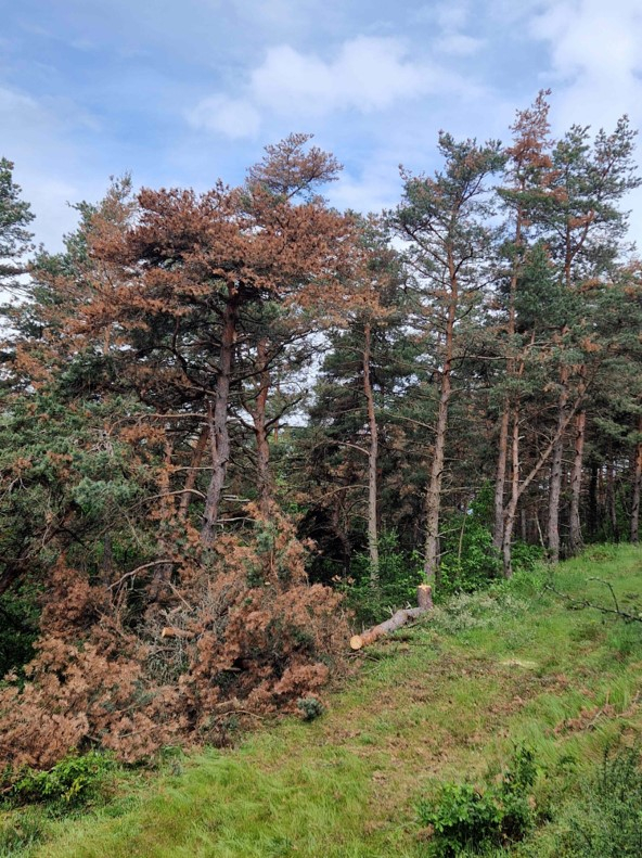 Le Sphaeropsis est une maladie émergente en France depuis 25 ans. Les pins noir, laricio et sylvestre montrent des symptômes de plus en plus fréquents surtout après les épisodes de sécheresse ou suite à des orages violents. Des peuplements adultes doivent souvent être exploités en urgence pour éviter des pertes trop importantes, lorsque les houppiers sont en moyenne affectés à plus de 50%.