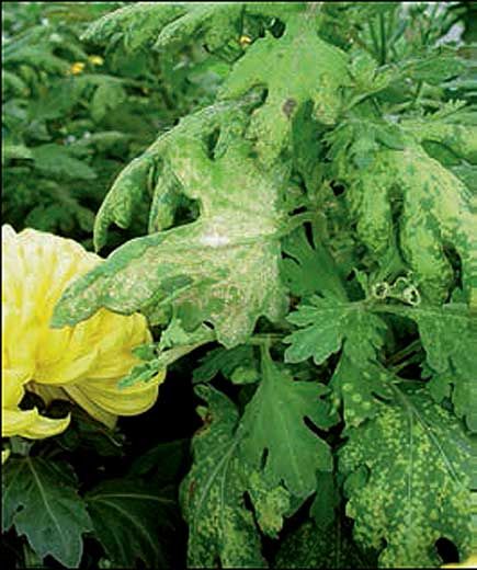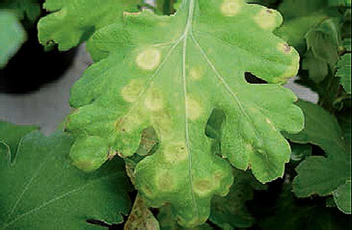 Sur potées, les symptômes apparaissent au cours de l’été quand les températures diminuent et les jours raccourcissent.