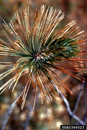Ensuite, les aiguilles brunissent au dessus des points d’infection puis elles meurent. Parfois, les aiguilles sont entièrement brunies.