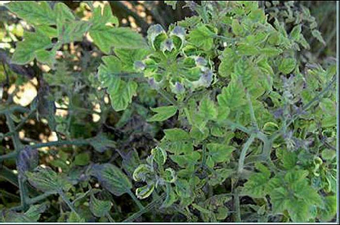 • La plante peut avoir une croissance fortement réduite et présenter des entre-noeuds plus courts. Des pousses latérales se développent et donnent un port buissonnant à la plante, ce sont des symptômes de type « balais de sorcière ».