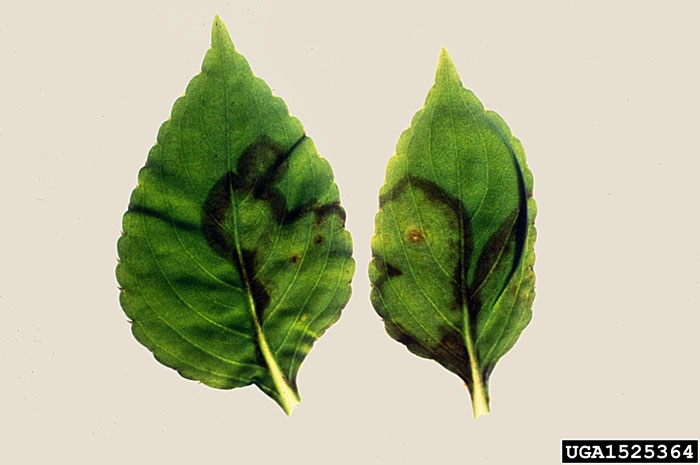 - Sur des végétaux plus âgés, les premiers symptômes apparaissent généralement à l’apex de la plante.