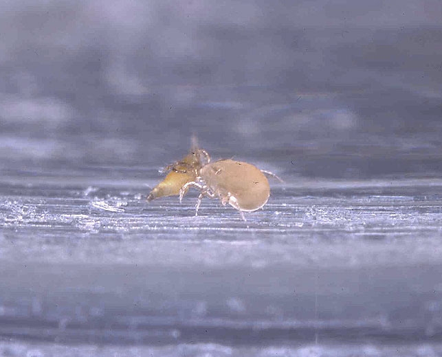 Amblyseius swirskii consomme du pollen, il est donc capable d'arriver dans les serres avant ses proies, et de survivre sans elles.