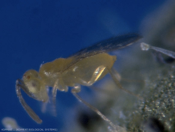 Moins sensible aux pesticides qu' Encarsia formosa.