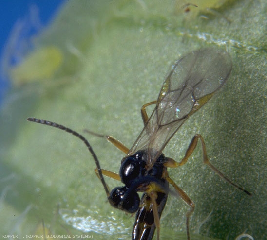 À l’émergence, la femelle possède déjà dans son abdomen environ 100 œufs fécondés et peut commencer immédiatement à parasiter les pucerons, en pondant le plus d’œufs durant les trois premiers jours qui suivent son émergence.