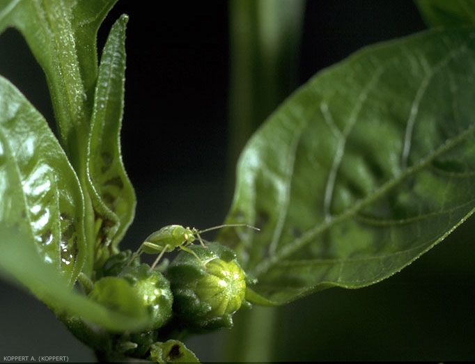 À partir de mi-Mai, les larves les plus âgées et les adultes migrent vers les plantes herbacées, leurs plantes hôtes d’été. La période exacte de leur départ des cultures ligneuses peut varier d’une année sur l’autre. Dans certaines conditions, une partie de la population reste sur les plantes hôtes d’hiver pendant toute l’année. Les poivrons et d’autres cultures sous serre sont des plantes hôtes d’été pour L. pabulinus.