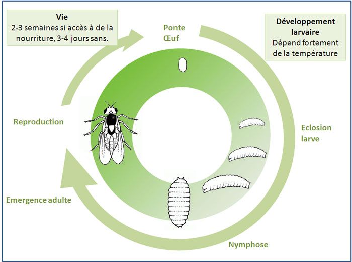 Ci-dessus le cycle de développement de Chromatomyia syngenesiae.