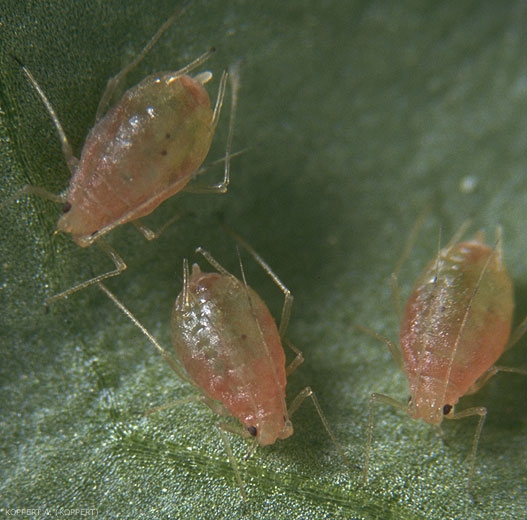 Si l'hiver n'est pas très rude, les femelles sont aussi capables d'hiverner sur les plantes hôtes d'hiver. Dans les tropiques et sous abri, où les conditions sont favorables tout au long de l'année, les pucerons ne changent pas de plante hôte et ne pondent pas d'oeufs d'hiver. Donc, sous serre, les pucerons continuent de se reproduire de façon asexuée tout au long de l'année.
