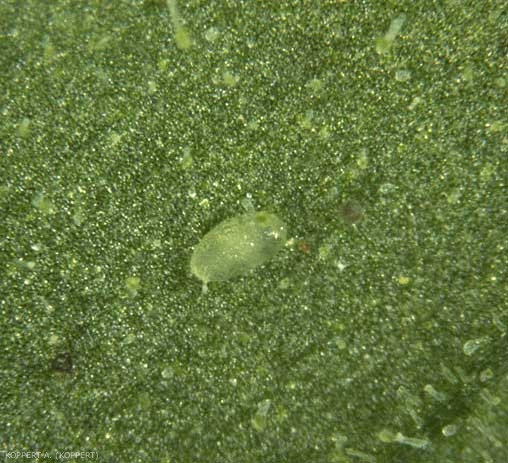D. pusillus se nymphose, souvent en groupe, sur la face inférieure des feuilles ou dans d'autres endroits protégés.