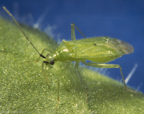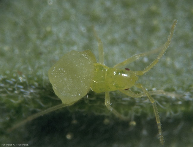 Avec leurs longues pattes, les larves et les adultes peuvent se déplacer rapidement, ils ne sont pas gênés par les poils glandulaire des plantes de tomates.