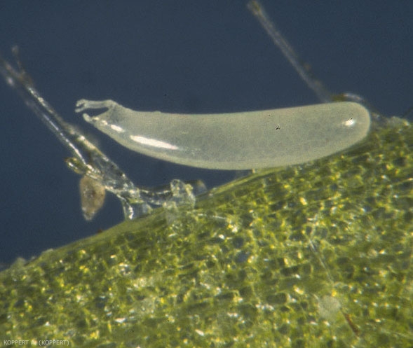 Les oeufs, très allongés, (figure 1) sont pondus dans les tissus végétal de la feuille, la nervure ou le pédicule.