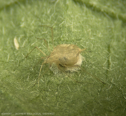 blanche aux téguments transparents (figures 1 et 2), cocon situé sous le puceron "fixé" à la feuille, ce qui forme un socle soyeux. |