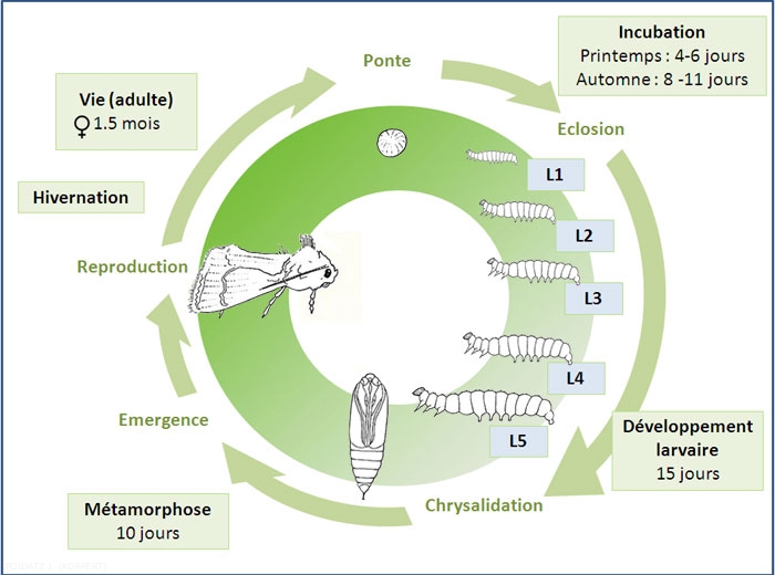 Ci-dessus le cycle de développement d'Acrolepiopsis assectella.