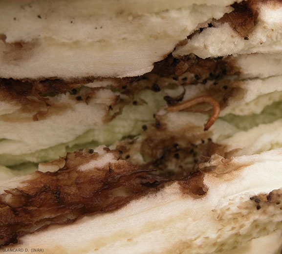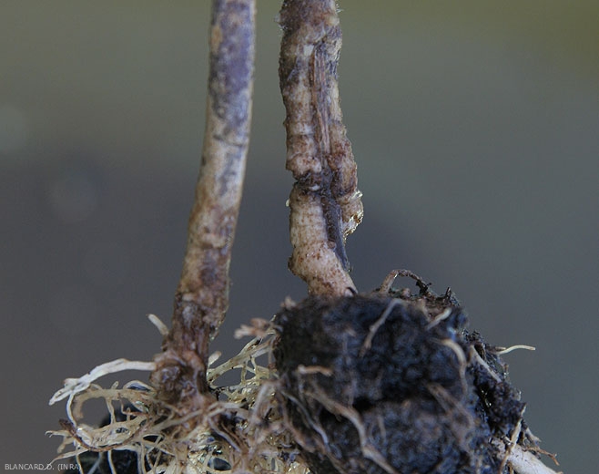 - Parties de la plante touchées : jeunes plantules, racines, tubercules, voire fruits plus ou moins au contact du sol.