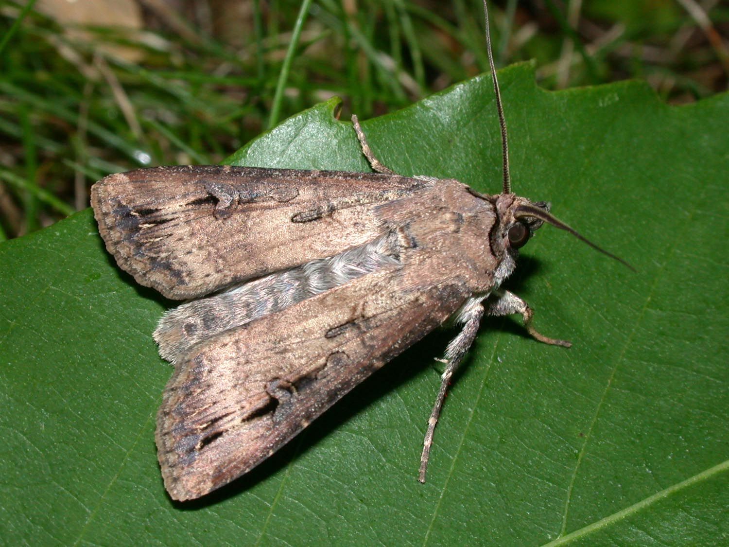 Les femelles pondent de préférence dans les zones les plus humides et récemment travaillées pour les semis ou les plantations printanières.  La chenille ou larve s'alimente la nuit : elle ronge les feuilles, les pétioles et le collet des plantes. Pendant le jour, elle se dissimule. La nymphose a lieu dans le sol.