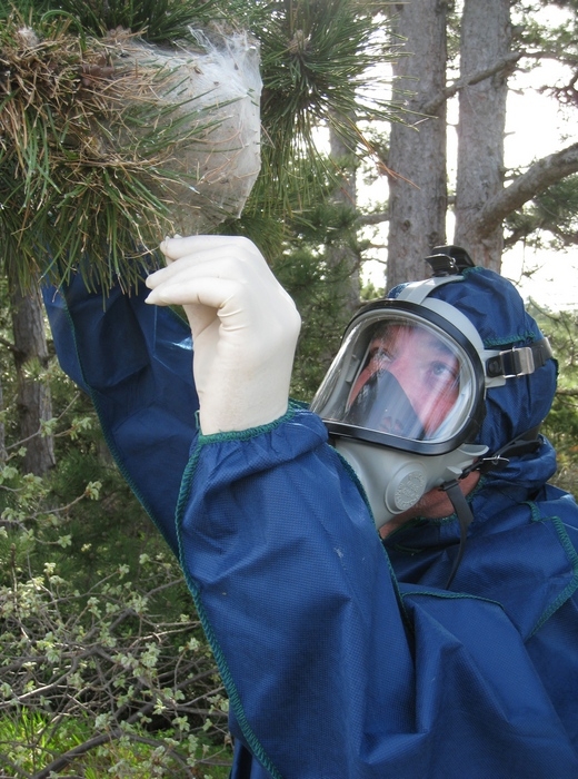 Equipement de Protection Individuel à utiliser pour les manipulations de chenilles processionnaires (© A. Leblond-INRAE)