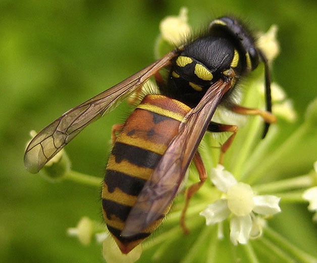 Les guêpes du genre Vespula sont quasiment dépourvues de poils, et ont un corps plus fin que celui de l’abeille (resserrement entre l’abdomen et le thorax, contrairement à l’abeille).