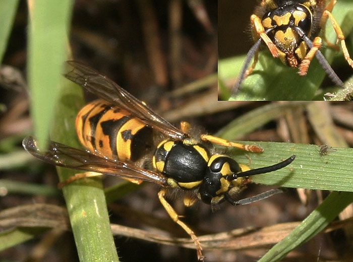 Les guêpes du genre Vespula sont de couleur jaune et noire. (abdomen jaune rayé de noir, avec différents motifs selon l’espèce) (figures 1 à 3).