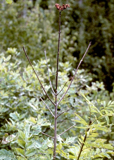Localisation sur l'hôte : Jeunes tiges et rameaux