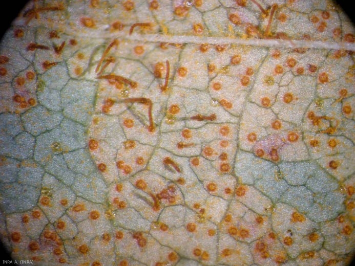 Le pou de San-José (Diaspidiotus perniciosus) et la cochenille du mûrier (Pseudaulacaspis pentagona) sont des cochenilles qui forment des croûtes sur les rameaux, comme le lecanium du cornouiller et de la vigne (Partholecanium corni) et Parthenolecanium persicae (cochenille à carapace du pêcher).