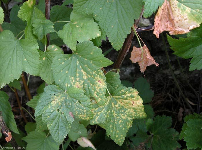 L'anthracnose causée par le champignon Drepanopeziza ribis (anc. Pseudopeziza ribis) et qui peut s'observer pendant les étés pluvieux, se caractérise par des taches de couleur rougeâtre puis gris-noirâtre. Les feuilles jaunissent et s'enroulent à leur extrémité, puis se dessèchent et tombent. La chute prématurée des feuilles, bien avant la fin de la période de végétation, provoque un affaiblissement général. Plusieurs espèces de rouilles peuvent affecter ces arbustes, par exemple Cronartium ribicola (Pucciniales), la rouille à colonnettes (figures 1 et 2) dont l'hôte écidien est le pin Weymouth ou Cembro et Puccinia ribis formant des téleutospores roux foncé.