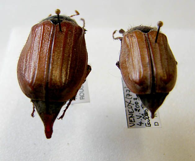 - Présence de vers blancs dans le sol, dimension des larves à l'automne de la 1ère année de développement, 10 à 20 mm. A l'automne de la 2ème année de développement, 30 à 35 mm. Taille maximale (3ème année et première partie de la 4ème année environ), 40 à 46 mm.
