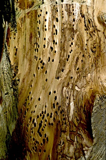 . perforation de l'aubier, structure anormale ("bois madré"), dépréciant une partie de la grume.