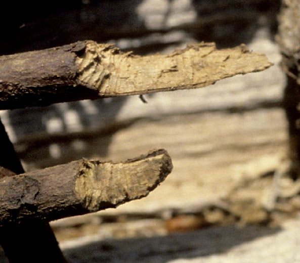 - Ecorce rongée de proche en proche.