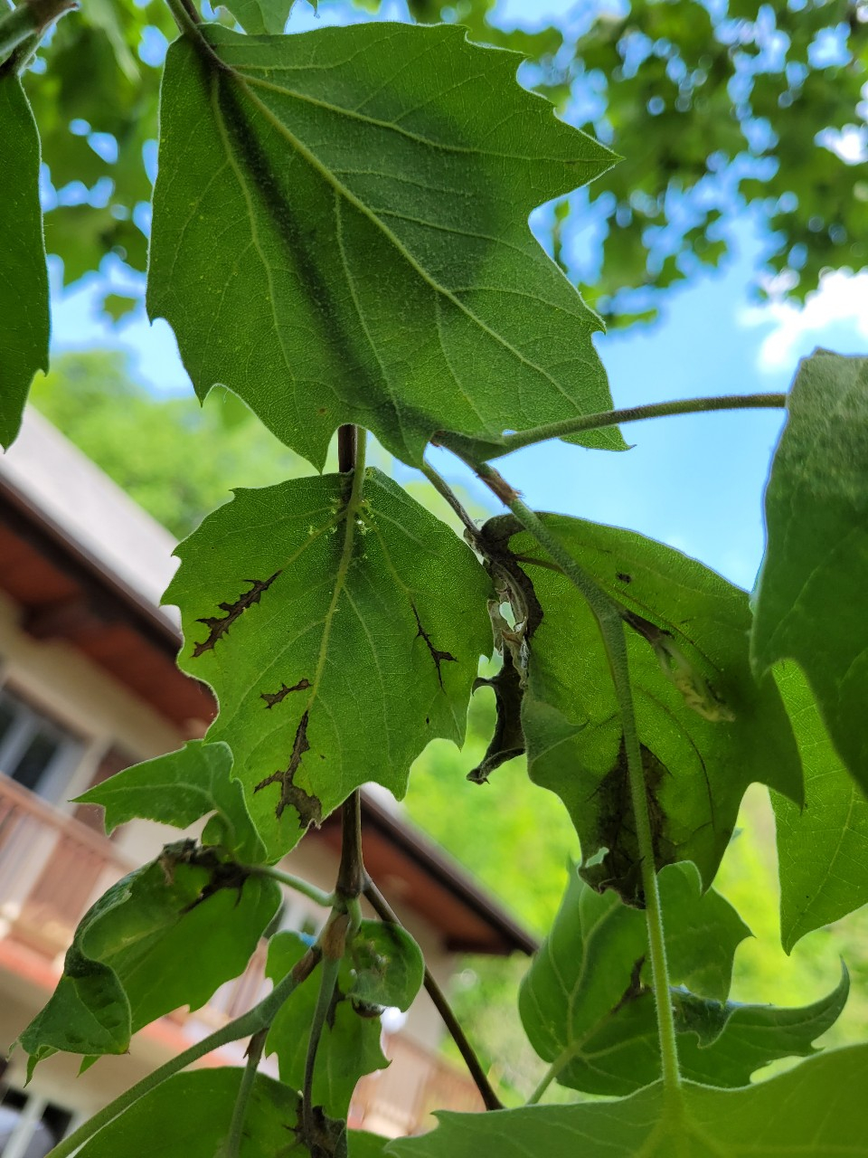 Dessèchement de rameaux et défoliation précoce : le dégât est spectaculaire, mais rarement grave.