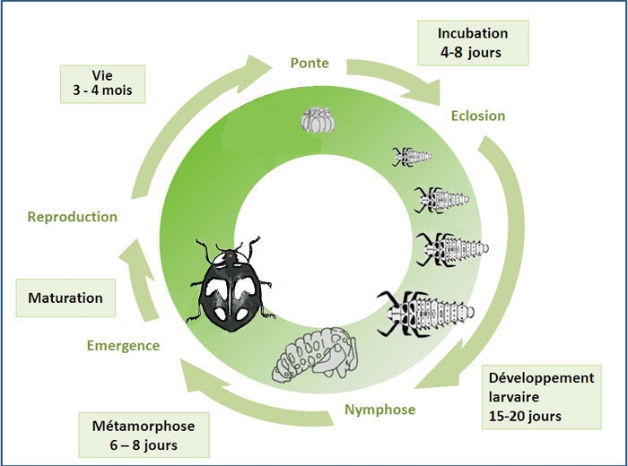 Ci-dessus le cycle de développement d'Adalia decempunctata.