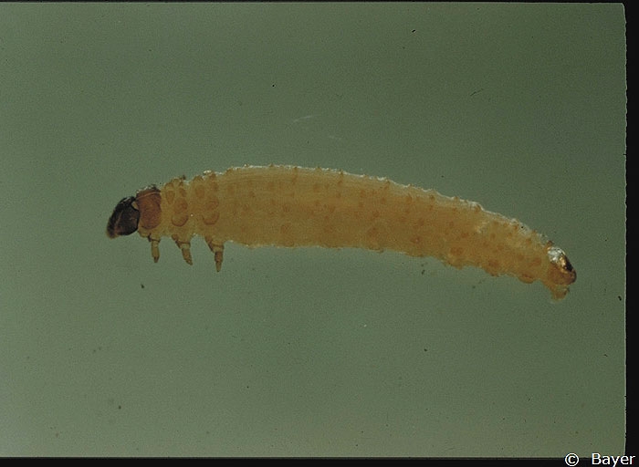 Les larves (figure 4) se nourrissent d'habitude des racines et, quand ils sont extrêmement abondantes et selon l'espèce, elles peuvent se nourrir de tubercules, laissant des signes d’alimentation en surface, c'est-à-dire des galeries superficielles, dont les parois subérisent (figures 6 et 7). Avant l'étape pupal, les larves quittent les tubercules pour reprendre leur développement dans le sol.