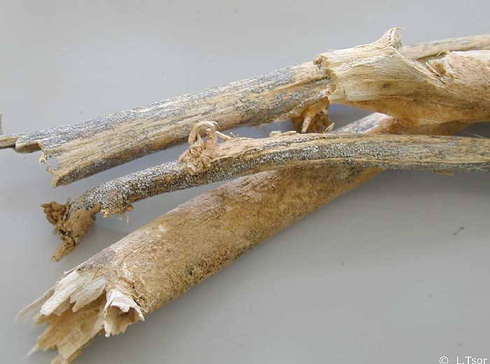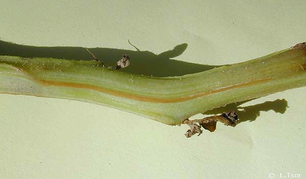 En coupant la base des tiges atteintes, on observe généralement une coloration brunâtre des vaisseaux (figure 3).