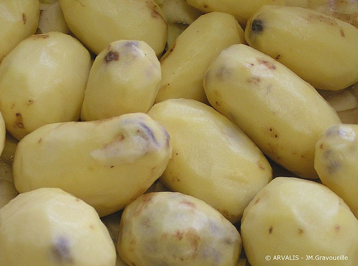 Le noircissement interne : la sensibilité des tubercules est liée à la variété mais elle s’accroît plus ou moins fortement avec l’élévation de leur teneur en matière sèche, surtout s’ils présentent une teneur en tyrosine élevée.