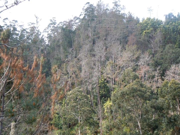 Le nématode du pin peut conduire à l’apparition de symptômes sévères, allant jusqu’au flétrissement généralisé des arbres puis leur mort.