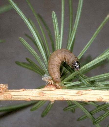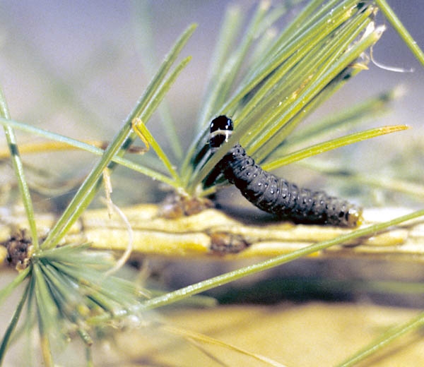 - forme "mélèze" avec le stade L5 à corps gris noirâtre et tête noire brillante ;