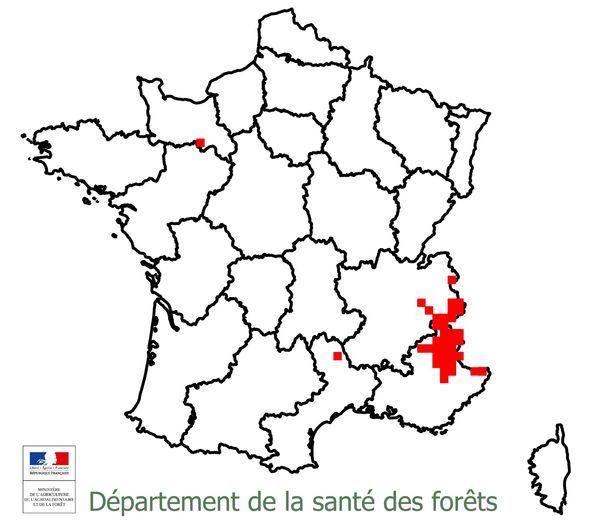 - Période de dégâts : de 2 à 3 années, espacées assez régulièrement de 8 à 10 années.