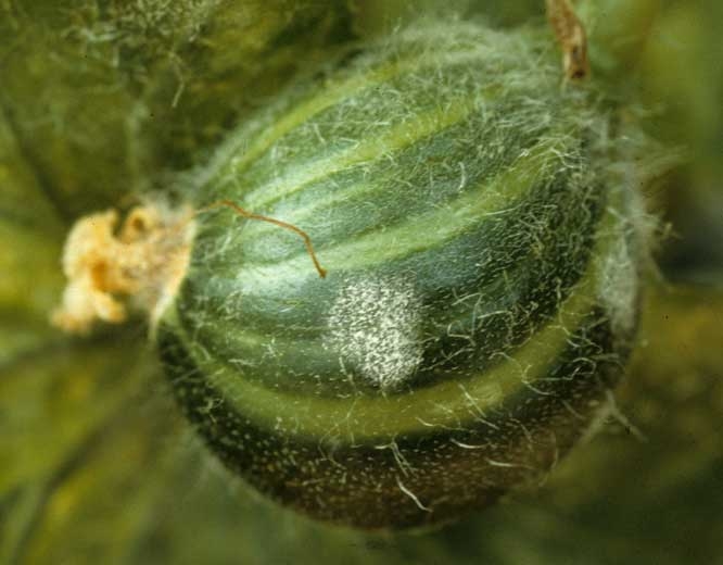 - Causes envisageables : des Ascomycètes (Erysiphales) responsables des oïdiums chez les plantes et appartenant à différents genres chez les légumes : Oidium (tomate) (figures 2 et 3), Golovinomyces (Cucurbitacées, salades), Podosphaera (Cucurbitacées) (figures 4 à 12), Erysiphe (haricot, pois, Crucufères, betterave), Leveillula taurica (tomate - figure 13, piment - figure 14, carotte, artichaut, concombre), etc.