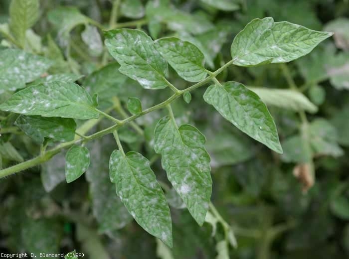 Ne pas confondre la sporulation foliaire blanche associée aux oïdiums avec celles produites par certains mildious, et agents de rouille blanche, etc.