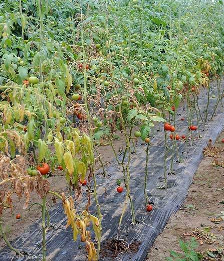 - Principaux réflexes : apprécier la répartition foliaire des symptômes sur les plantes et celle des plantes malades dans la parcelle. Arracher soigneusement quelques plantes flétrissantes afin de constater la présence de dégradations racinaires et/ou de lésions au collet. Couper transversalement ou longitudinalement quelques tiges à différents niveaux afin de constater un éventuel brunissement vasculaire et/ou une dégradation de la moelle. Confirmer que les plantes affectées sont réparties en foyers plus ou moins étendus. Contrôler si ces foyers ne correspondent pas aux zones les plus humides et/ou les plus froides de la culture. Des échantillons de plantes pourront être expédiés à un laboratoire afin d'identifier l'agent pathogène responsable.